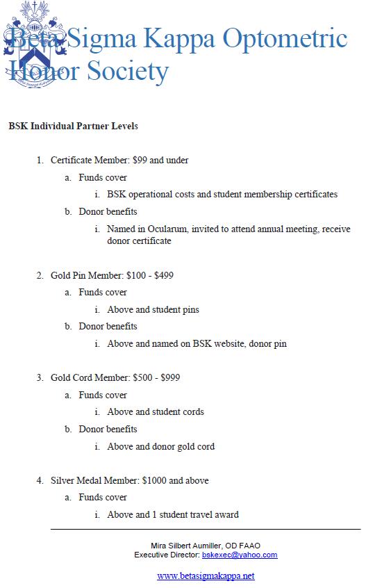 Mira Silbert Aumiller, OD FAAO Executive Director E-mail: bskexec@yahoo.com
